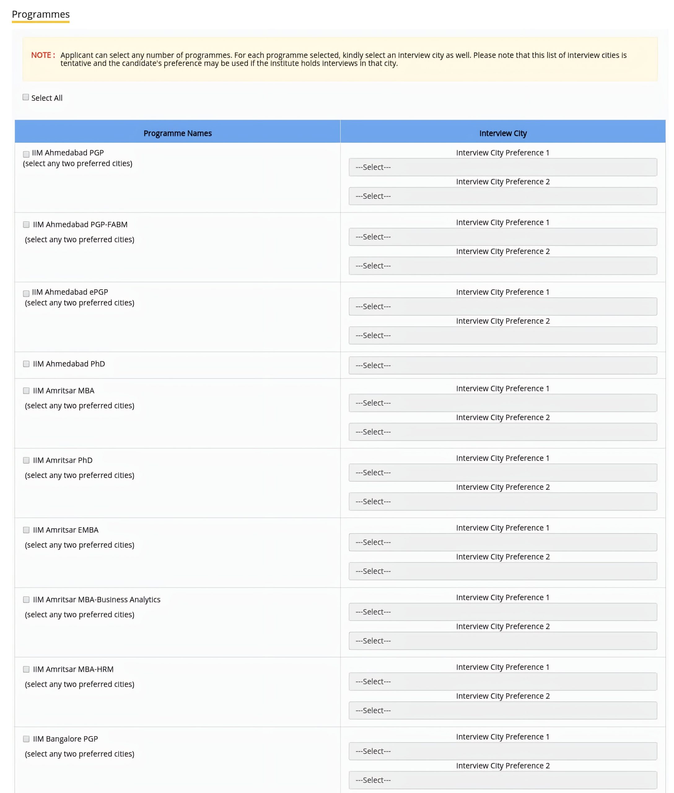 • Choice of Test Cities: Choose three exam centers from the available list of cities where you would prefer to take the CAT exam.