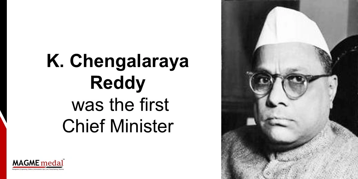 35. The first Chief Minister of Karnataka (Mysore State) was K. Chengalaraya Reddy.