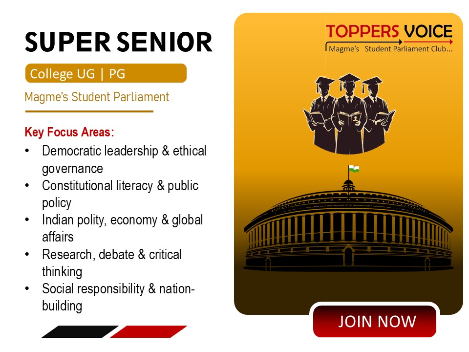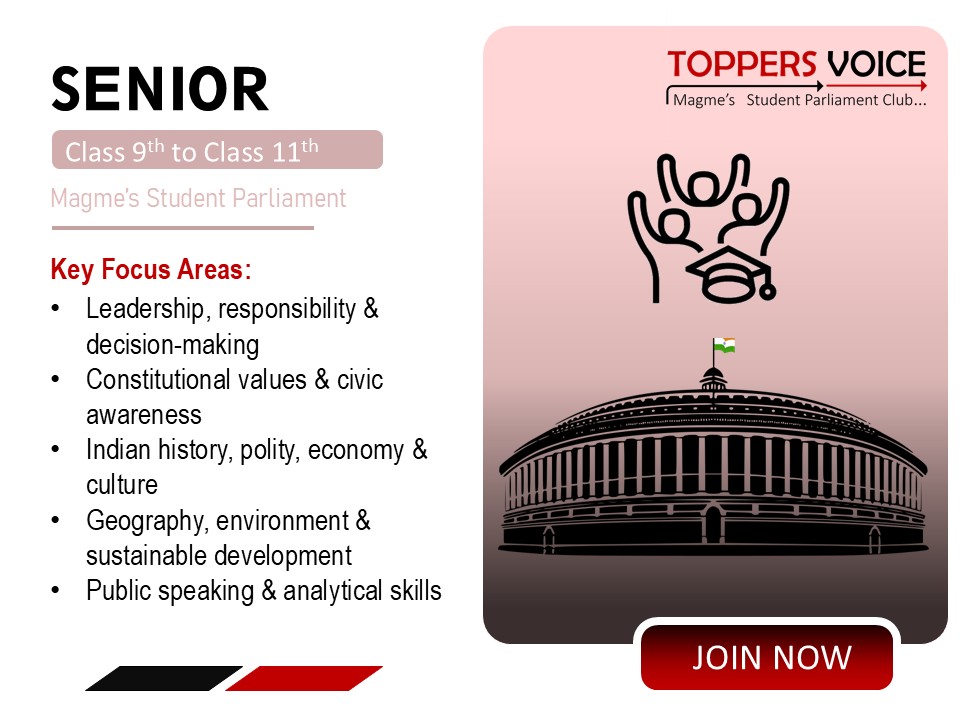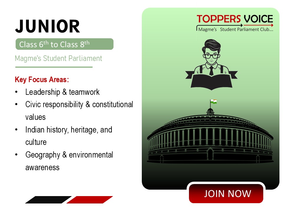 The Magme’s Toppers Voice (Student Parliament Club) is a co-curricular student organization designed to develop leadership qualities, civic responsibility, and awareness of India’s governance system among school students.